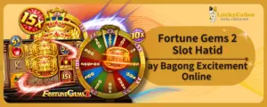 Ang Fortune Gems 2 slot ay isang online slot game mula sa Jili. Ito ay ang pangalawang titulo mula sa orihinal na Fortune Gems. Bagama’t pinanatili ang orihinal na paraan ng paglalaro, nagdadala ito ng panibagong excitement sa pamamagitan ng Lucky Wheel feature. Dinisenyo ang laro para pagsamahin ang klasikong slot experience at modernong mechanics na nagbibigay ng mas mataas na potensyal na panalo.